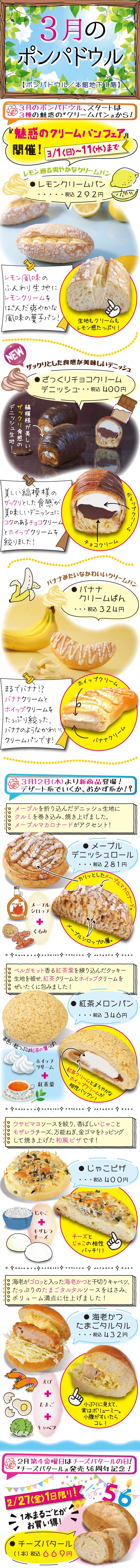 3月の【ポンパドウル】には、再登場の人気パンあり!お楽しみの新作パンあり!