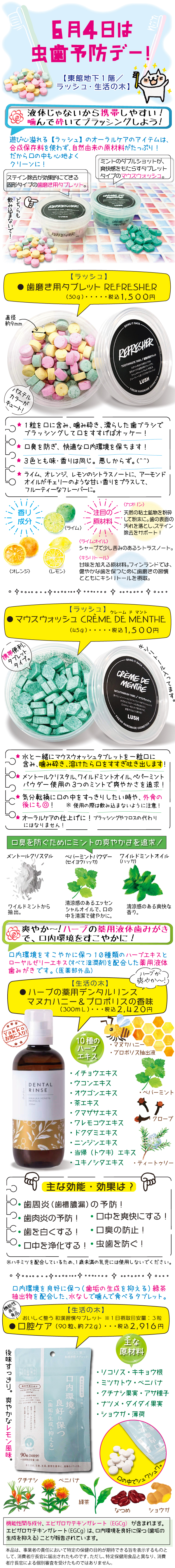 【ラッシュ】のタブレットと、【生活の木】のデンタルリンスで手軽に気軽にオーラルケア。